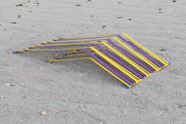 These objects were derived from the possible positions of the vinyl lawn chairs. This implicit position for me signified use, and the ability for objects to retain memory of use and function. But these sculptures (i.e. chairs) only performed visually the latent potential of function. They perform what chairs functionality is meant to provide.